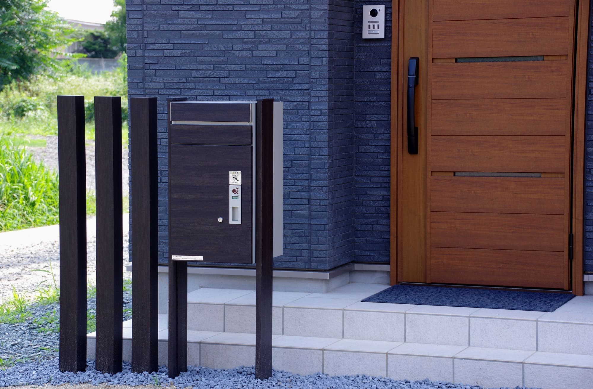 埋め込み型宅配ボックスは、門柱や外構と一体化した設計が特徴です。外観デザインに自然に馴染み、住宅全体の統一感を保てます。新築時に計画すると、配線や基礎工事をスムーズに進められる点も利点です。