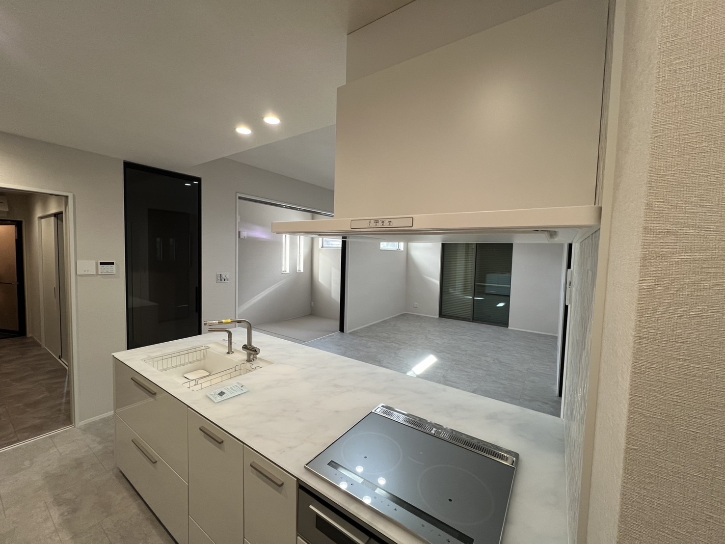 上質に包まれる空間の家 上質という名の、日常。 静かに美しさを語る新築住宅が完成しました。 白とグレーで構成された、洗練のLDK。 存在感のあるアイランドキッチンと、 水まわりへと続くスマートな動線が、 暮らしをより快適で、上質なものへと導きます。 無駄を削ぎ落とした先にある、 “本物の心地よさ”。 ここから始まる、特別な日常。 施工ギャラリー #アイランドキッチン#ファミリークローゼット#ホテルライク風