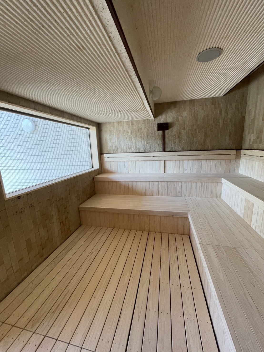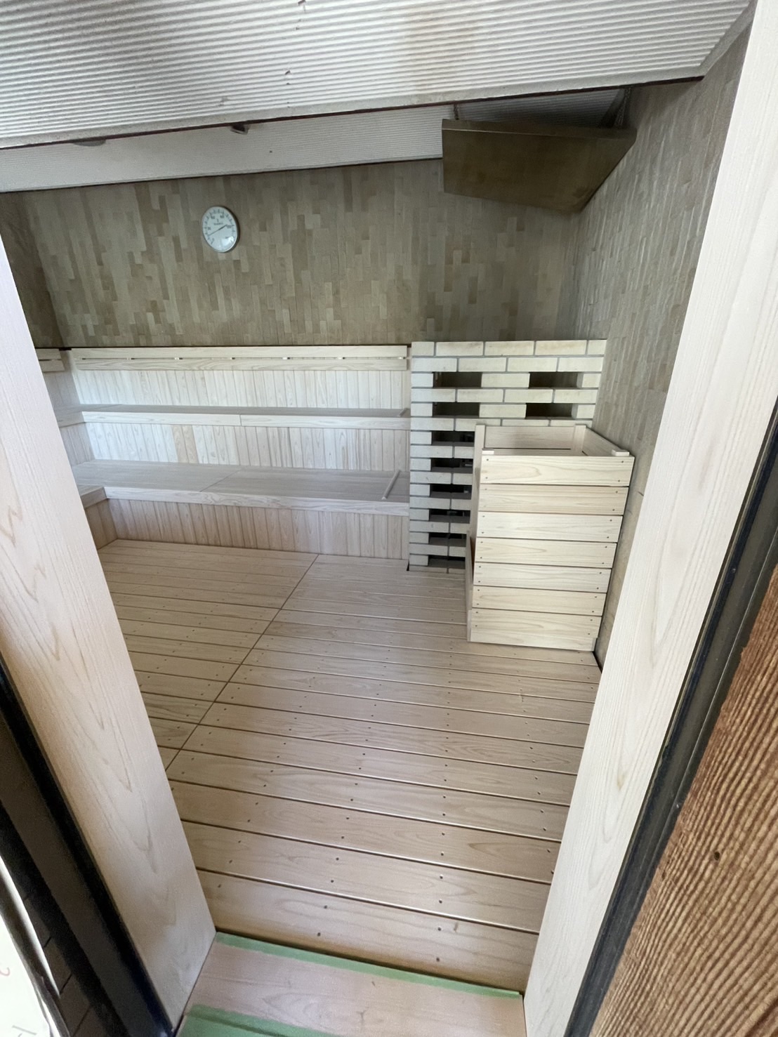 サウナ室の檜板貼り替え工事を施工いたしました。 長年の使用で傷んだ内装を一新し、 檜ならではの香りとぬくもりを感じられる空間へ。 湿度・熱に強い素材選びはもちろん、 一枚一枚丁寧に施工することで、 快適性と耐久性を両立しています。 扉を開けた瞬間に広がる檜の香り。 “整う時間”を、さらに上質なものに。 見えない部分までこだわるのが、私たちの仕事です。 サウナ室の改修・リフォームもお気軽にご相談ください。 After Before
